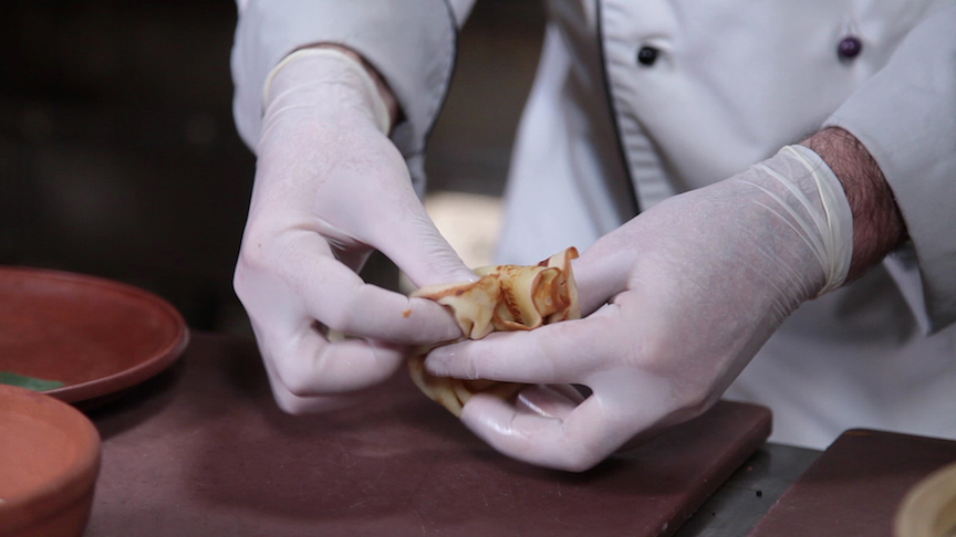 Stepping up to handling foods with strong odors, possible irritants like those in jalapeno peppers, or heavier bacterial exposure such as in meats, food-safe vinyl gloves are an excellent option. They are ideal for busy restaurants because they are very comfortable, fitting the hand more loosely than nitrile or latex, as well as modestly priced.